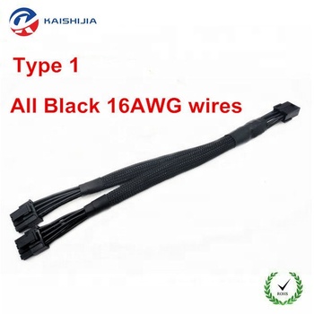 高品質30cm16AWG GPU VGA PCI-e8ピンメス-デュアルGPU8 (6 2) ピンオススリーブGPU8ピンスプリッター電源延長ケーブル
