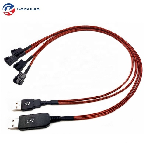 50cm 5V 12VUSBからデュアル3ピン/4ピンPWMファンスプリッターケーブルアダプター